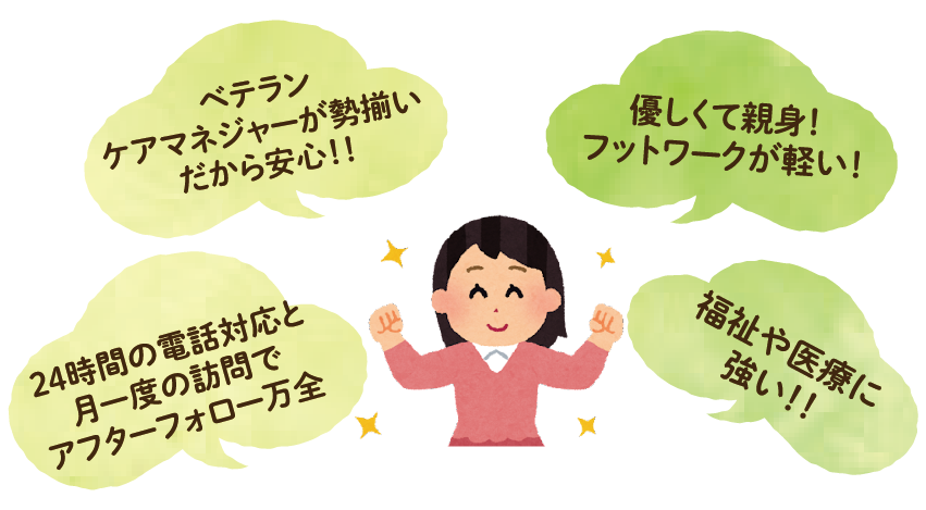 専門のケアマネジャーが、ご本人とご家族の気持ちを丁寧にお伺いし、